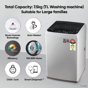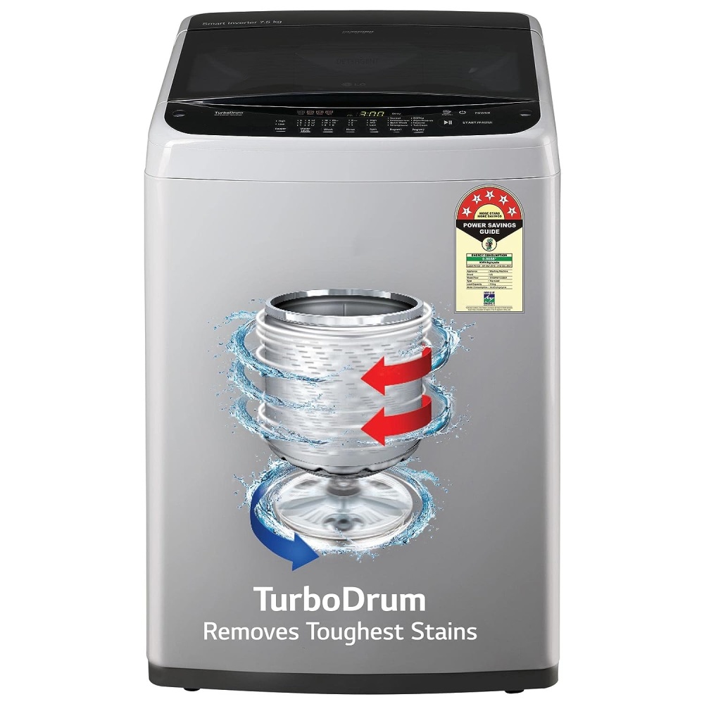 LG 7.5 Kg Fully Automatic Top Load Inverter Washing Machine with TurboDrum, Memory Backup & Smart Filter (T75SPSF1Z, MiddleFree Silver) , Smart Inverter Technology