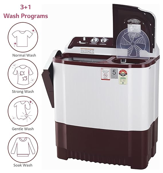 LG 8Kg 5 Star Top Loading Semi Automatic Washing Machine | Rat Away Technology | Collar Scrubber | Wind Jet Dry | Lint Collector (P8030SRAZ, Burgundy)