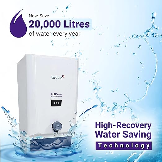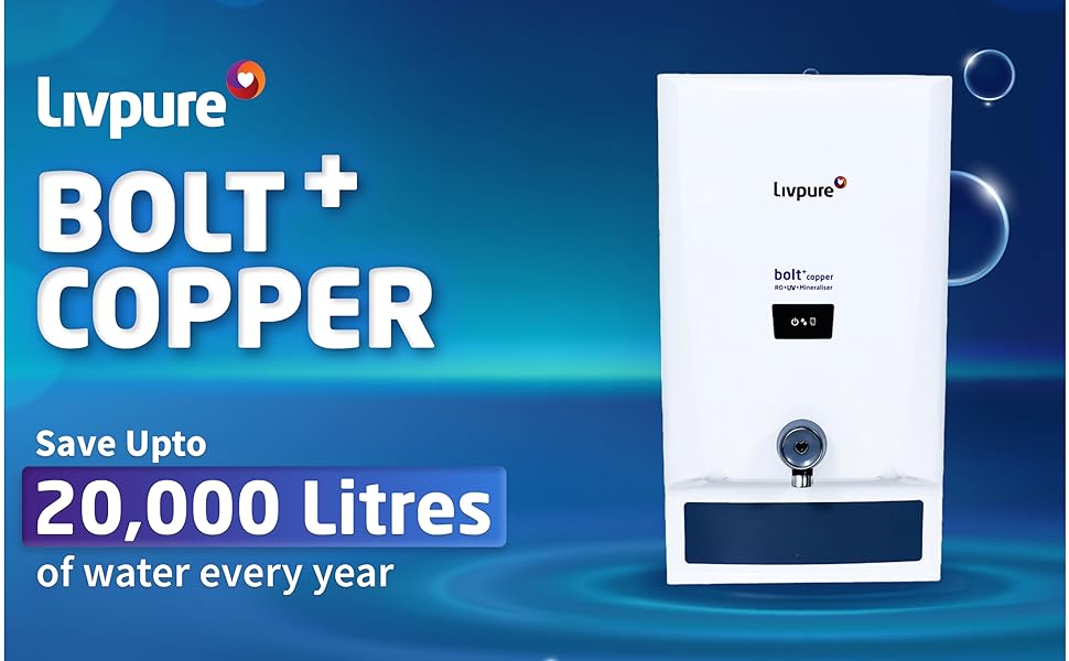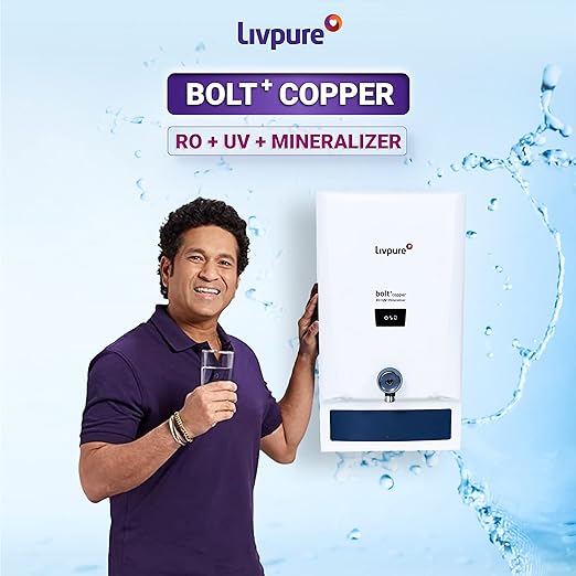 Livpure Bolt+ copper, 80% Water Savings, Copper+RO+In-Tank UV+Mineraliser+Smart TDS Adjuster+Taste Enhancer, 7 L tank, Water Purifier for home (White) Suitable for Municipal, Tanker, Borewell water