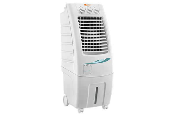 Rust proof High Gloss ABS body for durability6Auto Fill for uninterrupted cooling ; Water tank capacity (Litres upto brim): 30Ltrs ; Power Consumption (Wattage): 140 W ; Air Throw distance (Feet/metres): 25 ft./7.6 m. ; Castor / Trolley: 2 Trolley Wheels & 2 Castor Wheels